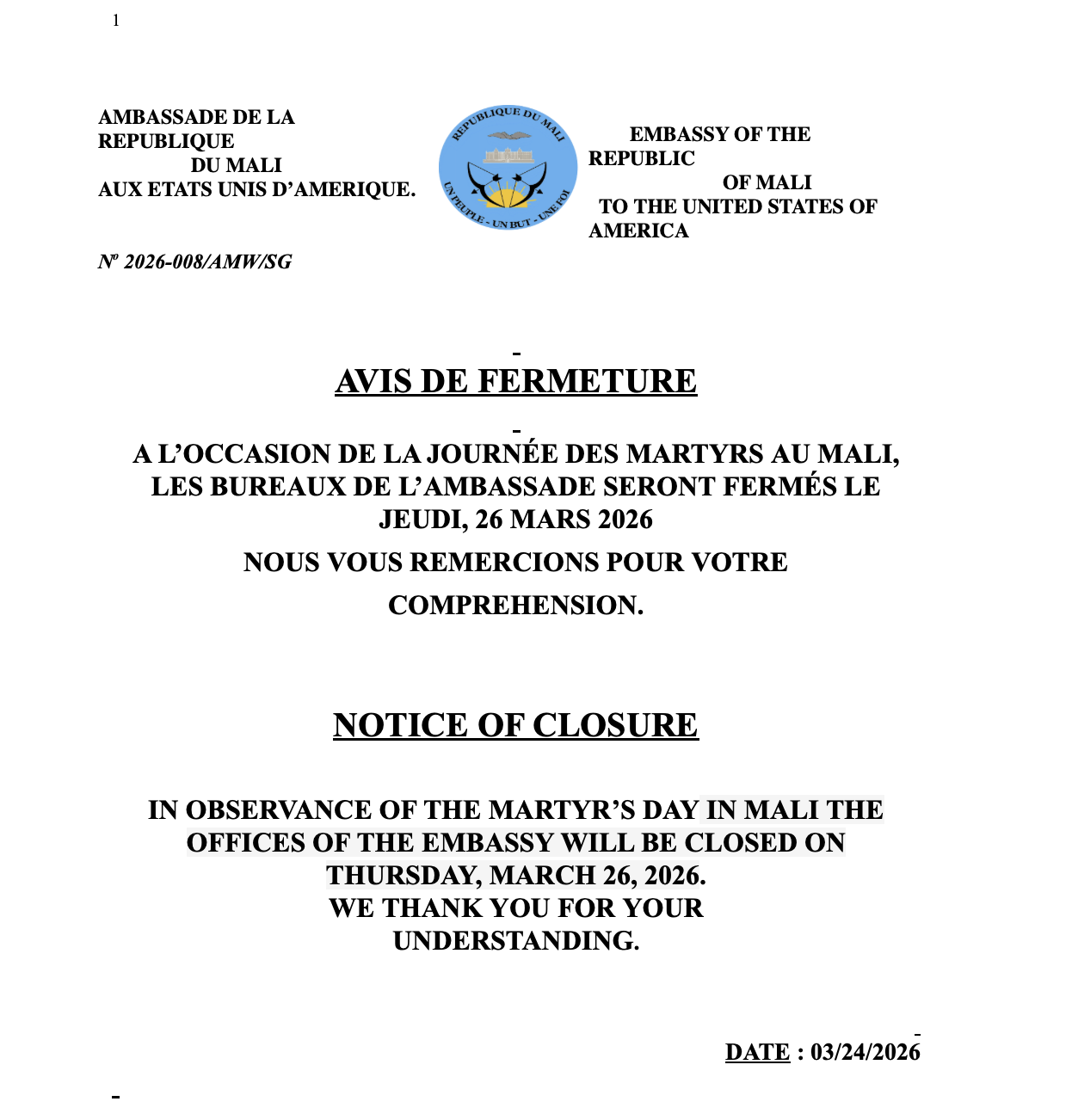 <img class="aligncenter size-full wp-image-4577" src="https://maliembassy.us/wp-content/uploads/2026/03/Screenshot-2026-03-26-at-12.37.10-AM.png" alt="" width="1214" height="1368" /> <img class="aligncenter size-full wp-image-4578" src="https://maliembassy.us/wp-content/uploads/2026/03/Screenshot-2026-03-26-at-12.37.04-AM.png" alt="" width="1246" height="1302" />