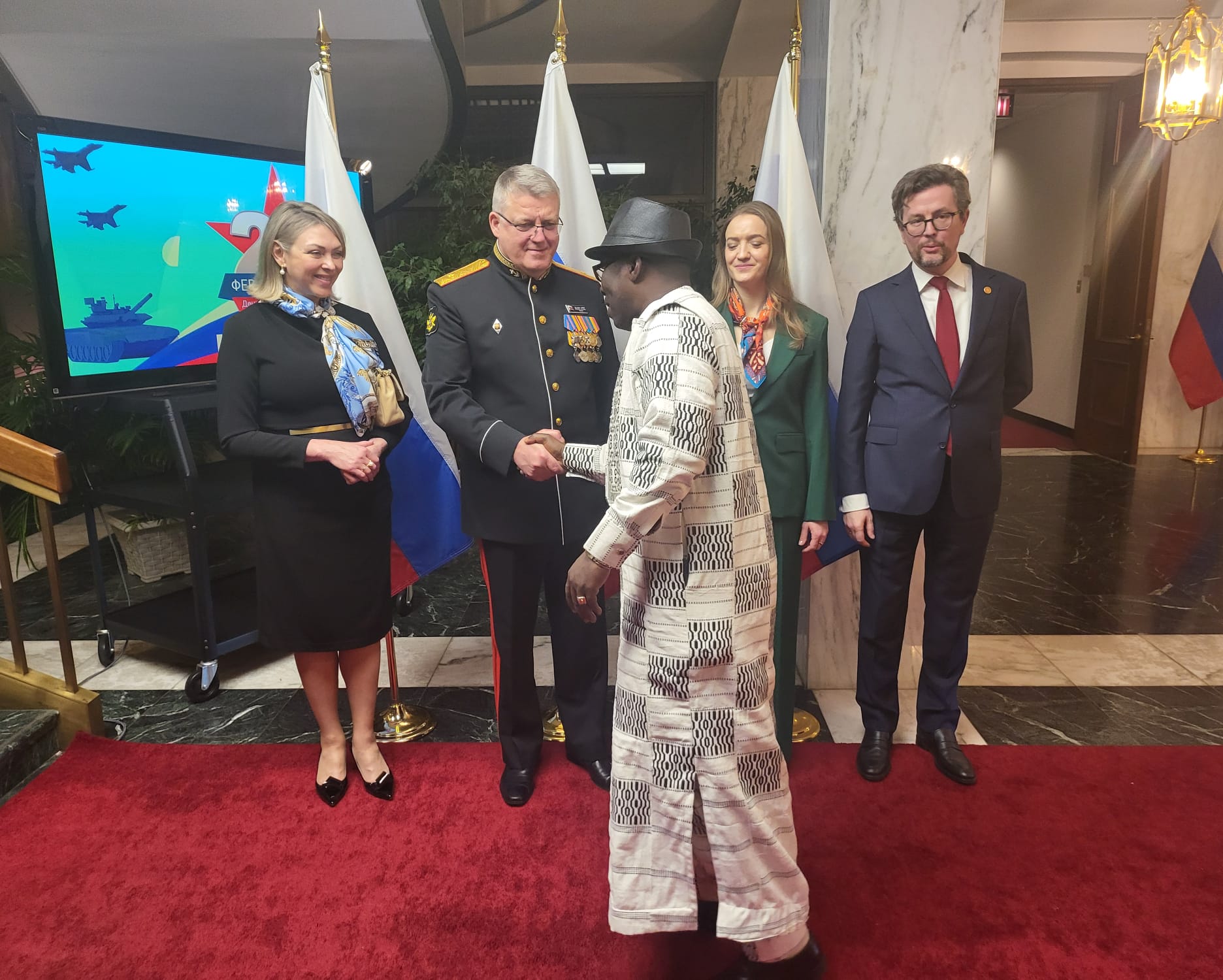 Vendredi 20 février 2026, SEM Sekou Berthe a pris part à une réception solennelle à l’occasion de la Journée du Défenseur de la Patrie tenue à l’Ambassade de Russie à Washington.
