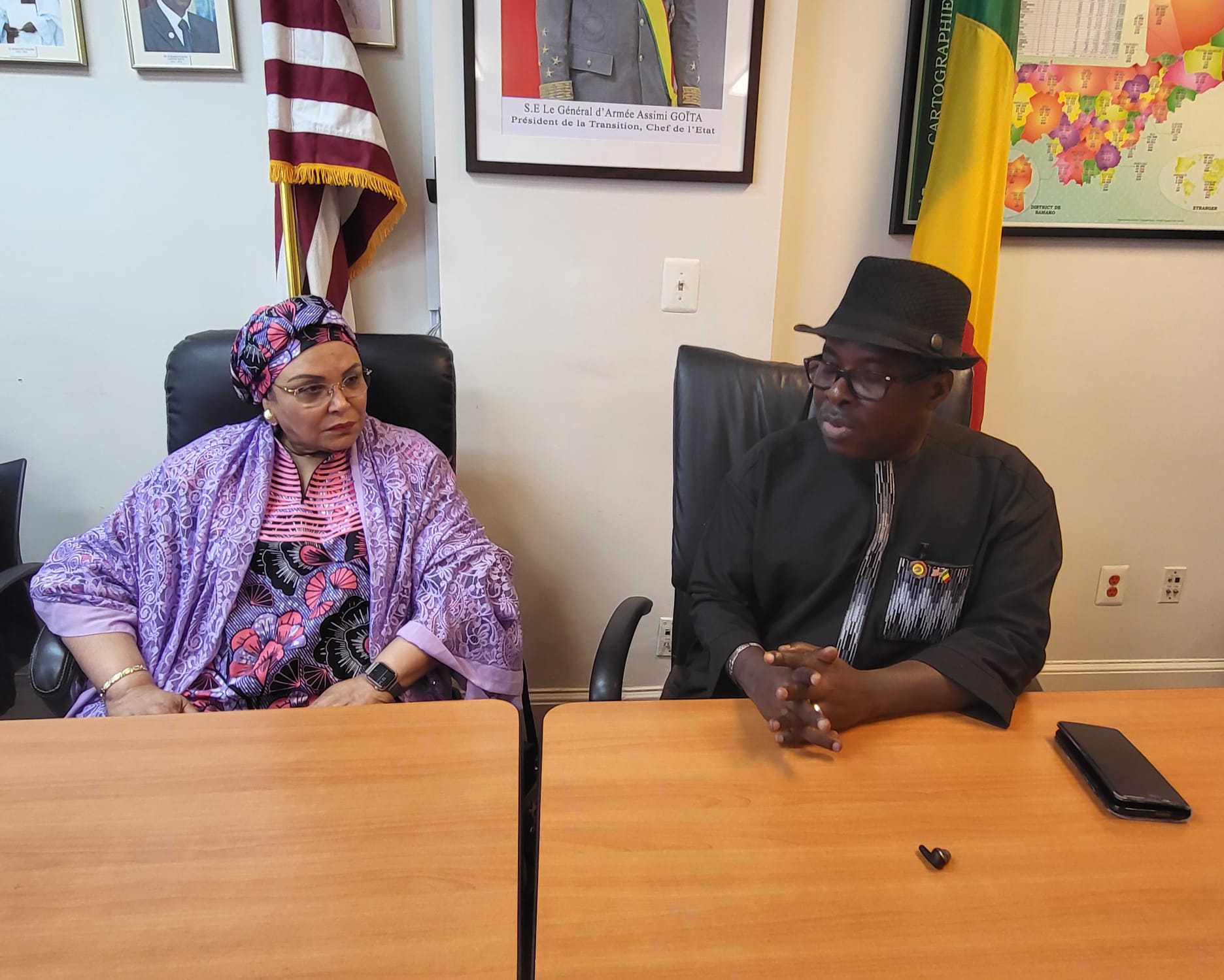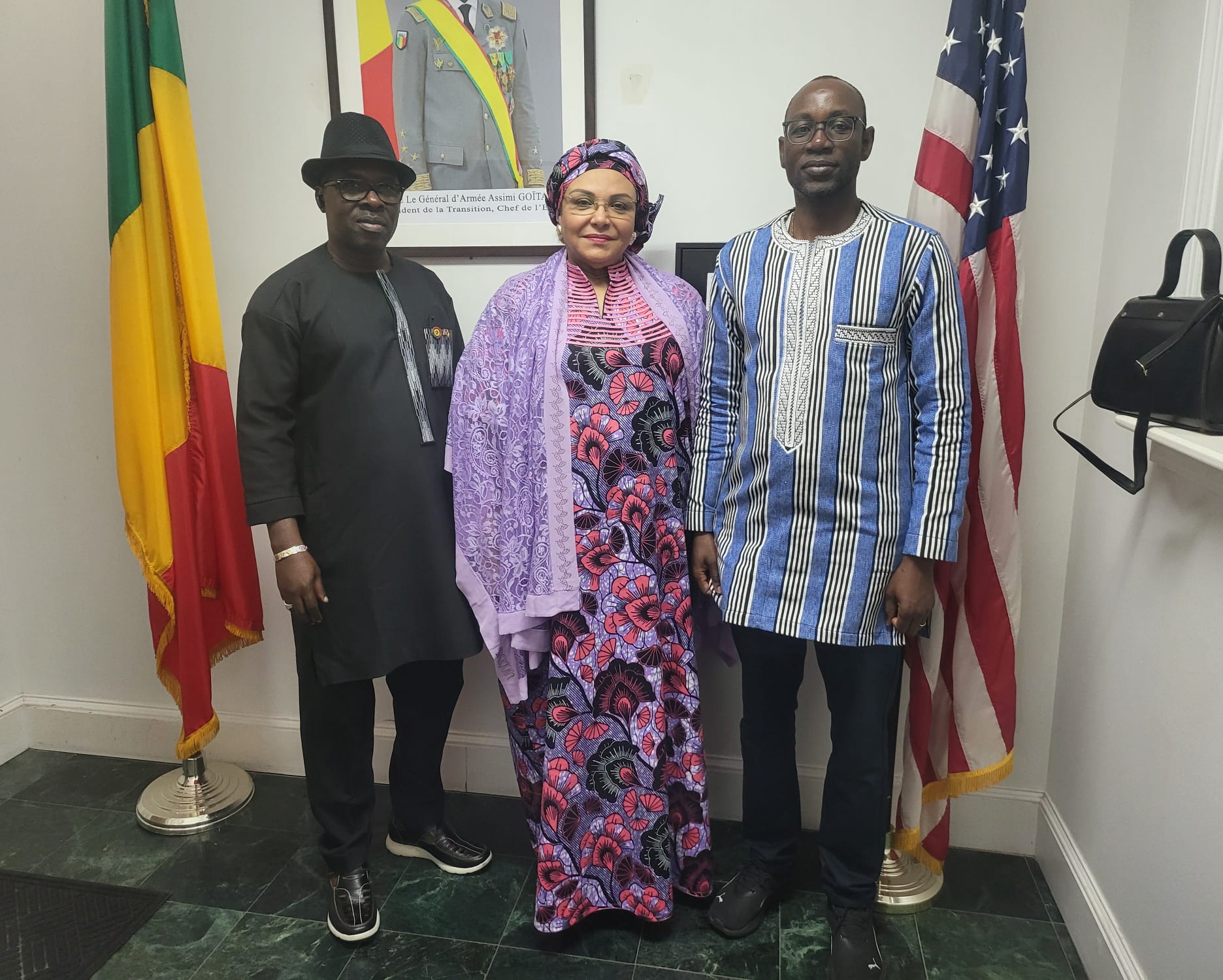 Lundi 27 avril 2026, SEM Sekou Berthe a reçu la visite de l’ambassadeur du Niger Mme Bare Aissata et le Chargé d’affaires du Burkina M. Édouard Bouda, accompagnés des membres de leurs personnels. Ils étaient venus présenter leurs condoléances suite aux attaques terroristes du 25 avril 2026 ayant causé le décès du ministre de la défense, le Général de Corps d’Armée Sadio CAMARA. Ils ont prié pour le repos éternel de l’âme du défunt et souhaité prompt rétablissement aux blessés.