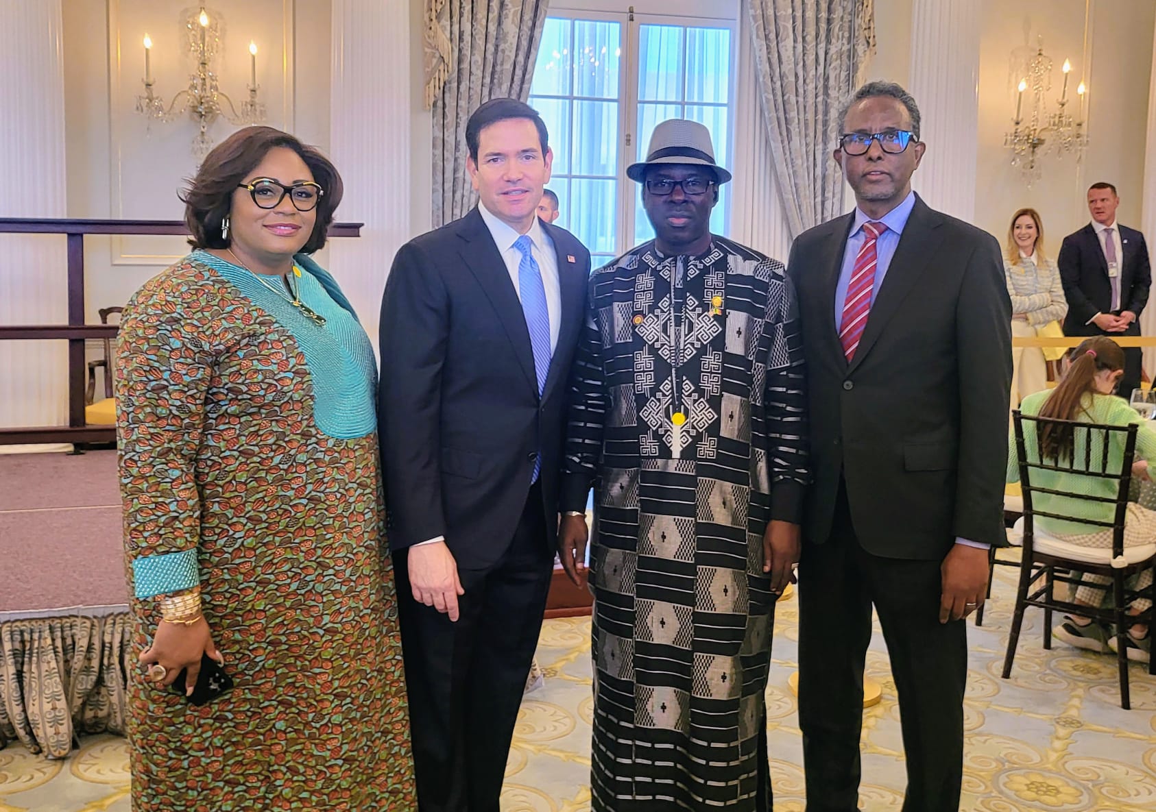 Lundi 06 avril 2026, à l’invitation du Secrétaire d’Etat americain Marco Rubio, SEM Sékou BERTHE a pris part à une reception en présence de quelques membres du corps diplomatique et de leurs familles.